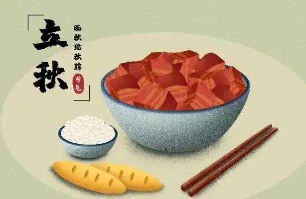 “貼秋膘”,民間流行在立秋這天懸秤稱人,將體重與立夏時對比。因?yàn)槿说较奶?,本就沒有什么胃口,飯食清淡簡單,兩三個月下來,通常就會出現(xiàn)麻煩:體重大都會減少一些。秋風(fēng)一起,胃口大開,想吃點(diǎn)好的,增加一點(diǎn)營養(yǎng),補(bǔ)償夏天的損失,補(bǔ)的辦法就是“貼秋膘”:在立秋這天各種各樣的肉,燉肉、烤肉、紅燒肉等等,“以肉貼膘”。