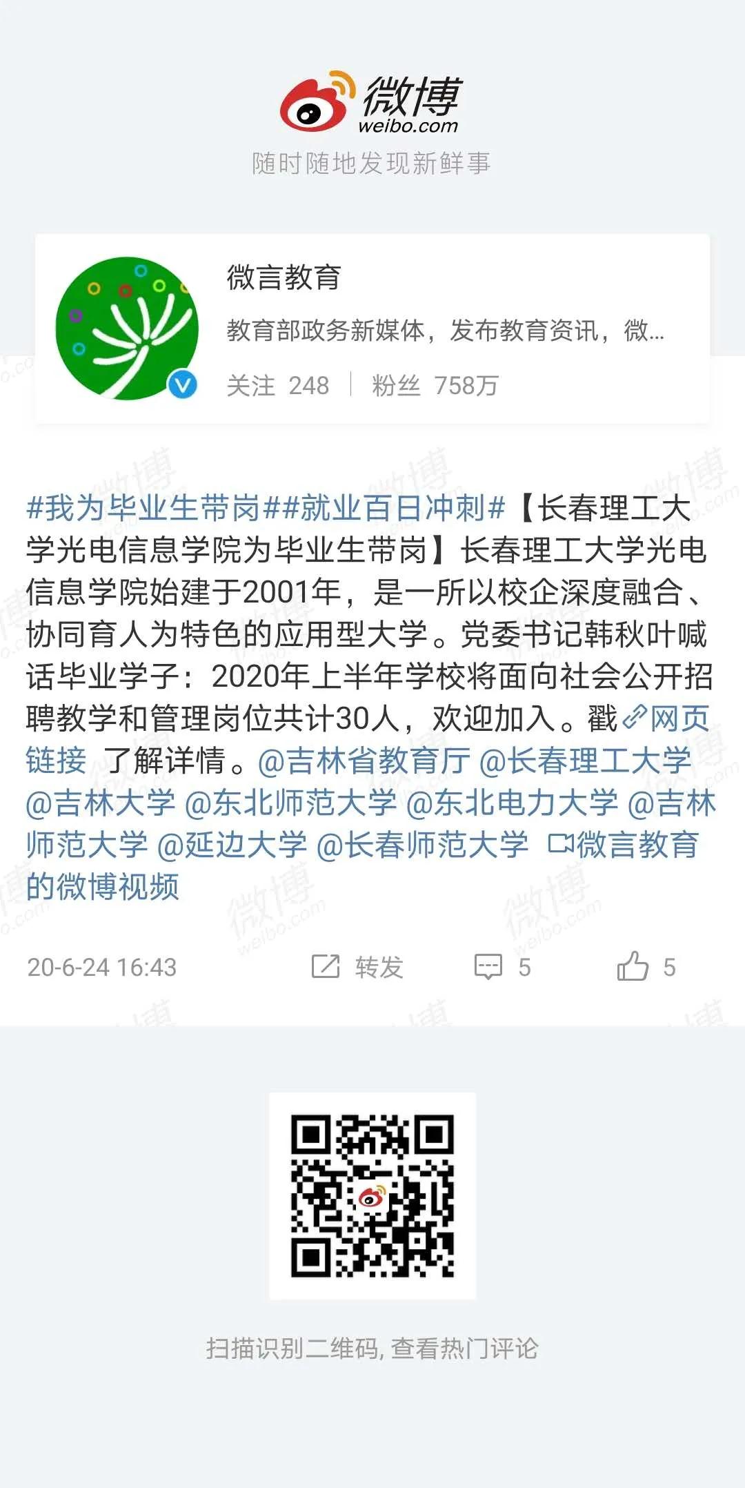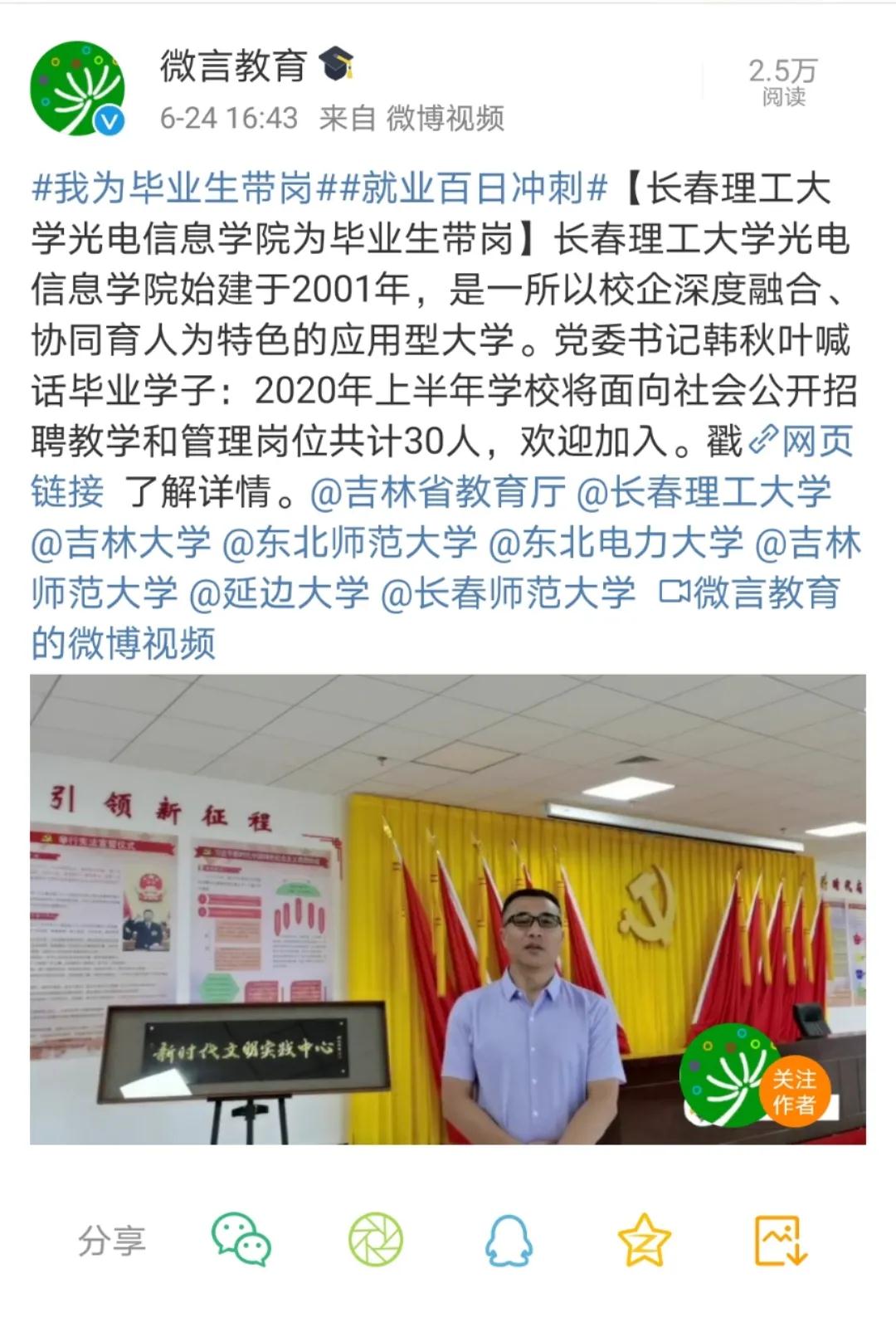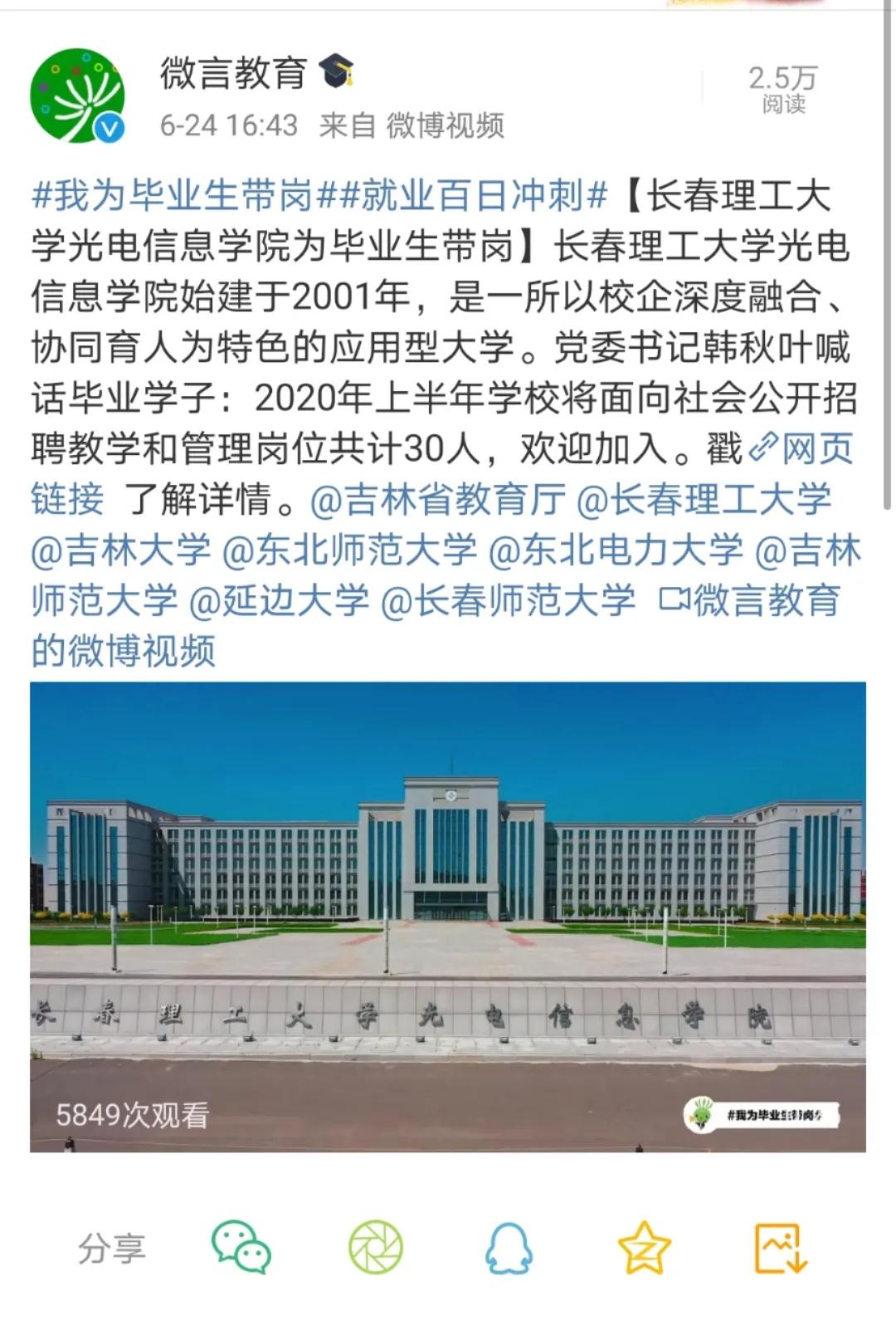 教育部官方微博微言教育發(fā)布:長(zhǎng)春理工大學(xué)光電信息學(xué)院#為畢業(yè)生帶崗#