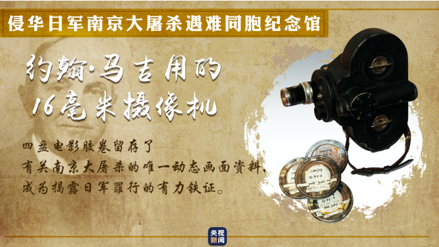 約翰·馬吉用他的16毫米家用攝像機(jī),借職務(wù)之便偷偷拍攝,記錄下日寇的暴行。整整4盤(pán)膠卷,每一幀都是揭露日寇罪行的有力鐵證,也是留存至今的有關(guān)南京大屠殺的唯一動(dòng)態(tài)畫(huà)面。