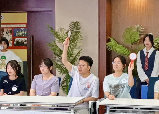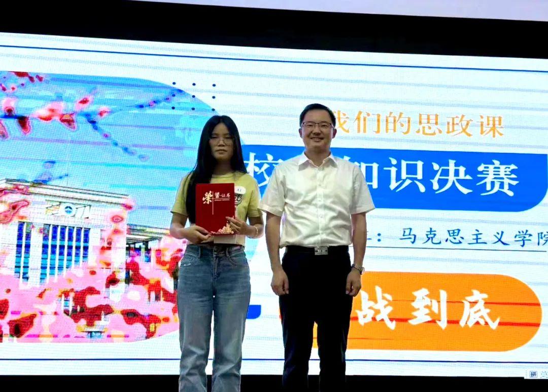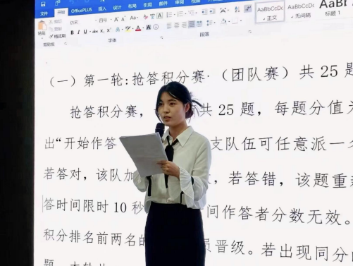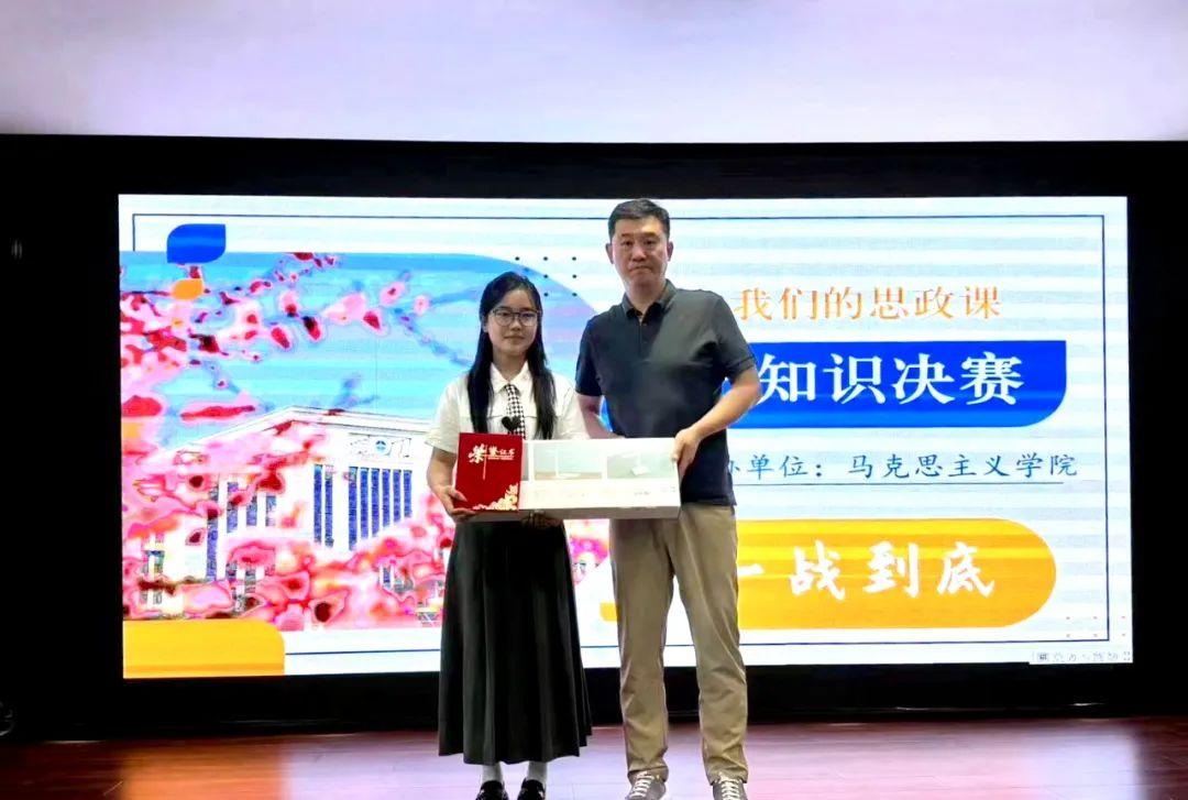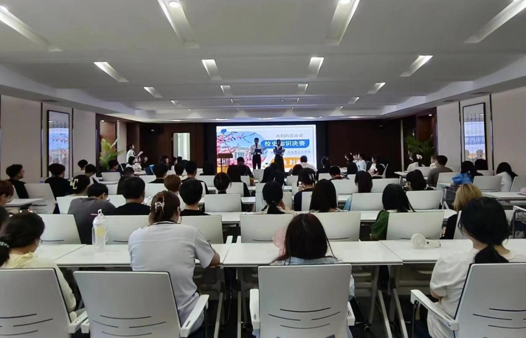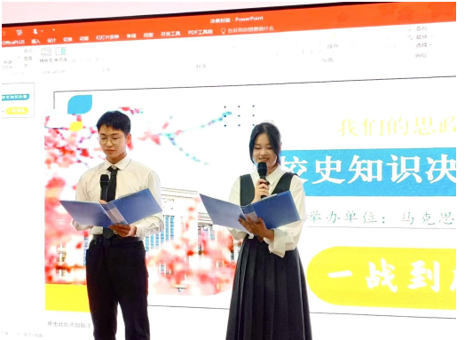 本次活動(dòng)歷時(shí)兩個(gè)月,馬克思主義學(xué)院宣講團(tuán)師生共同編撰了校史知識(shí) 100題。比賽分為初賽、復(fù)賽、決賽三個(gè)階段,共 200余名同學(xué)報(bào)名參賽,最終11人進(jìn)入決賽。在決賽環(huán)節(jié),場(chǎng)上選手,場(chǎng)下觀眾,共同答題,擊鼓傳小電,有獎(jiǎng)?chuàng)尨鸬拳h(huán)節(jié),同學(xué)們踴躍參與,現(xiàn)場(chǎng)氣氛熱烈歡快。