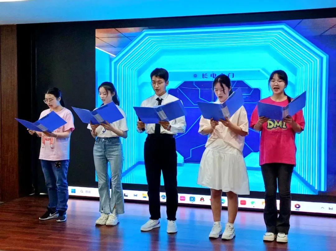 最后,馬克思主義理論師生宣講團(tuán)的同學(xué)們,獻(xiàn)上了詩歌朗誦《青春未央夢(mèng)啟長(zhǎng)電》,抒發(fā)了莘莘學(xué)子對(duì)學(xué)校的熱愛之情。