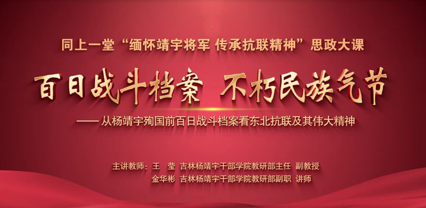 此次思政大課的主題是《百日戰(zhàn)斗檔案 不朽民族氣節(jié)——從楊靖宇殉國(guó)前百日戰(zhàn)斗檔案看東北抗聯(lián)及其偉大精神》,課程由吉林楊靖宇干部學(xué)院教研部主任、副教授王瑩,吉林楊靖宇干部學(xué)院教研部副職、講師金華彬主講。他們從東北抗聯(lián)十四年艱苦斗爭(zhēng)歷程入題,透過(guò)百日戰(zhàn)斗檔案,帶領(lǐng)青年學(xué)子共同回顧東北抗聯(lián)歷史,走進(jìn)偉大的楊靖宇將軍,深刻感悟東北抗聯(lián)精神,汲取磅礴奮進(jìn)力量。