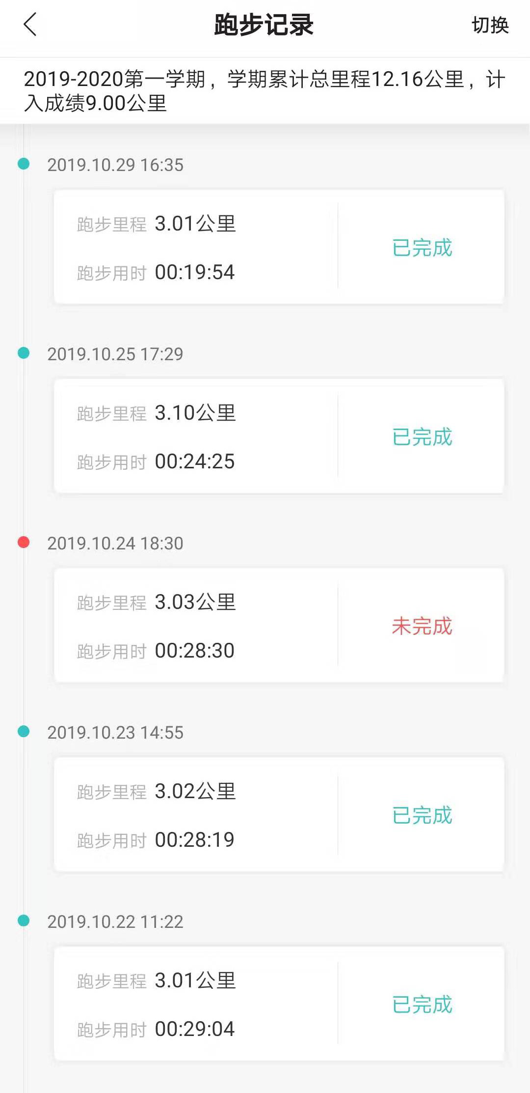 ⑤本學(xué)期累計完成-指符合跑步規(guī)則并且上傳成功的總里程數(shù);