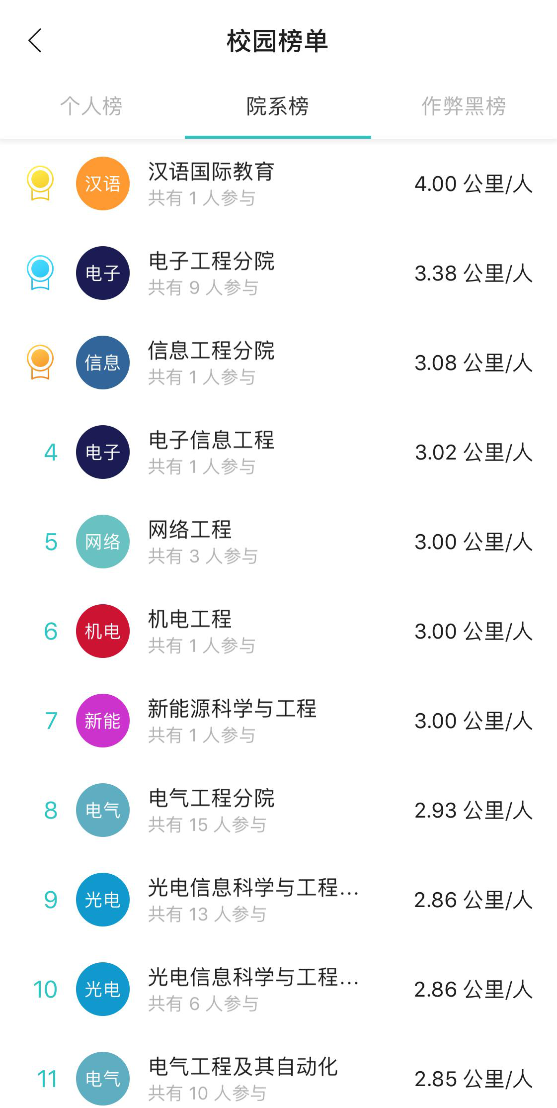 ★鼓勵學(xué)生經(jīng)常參加鍛煉,鼓勵學(xué)生多跑,每學(xué)期末按照“運動世界校園APP”跑步系統(tǒng)排行榜,對全院男、女各排名前10名的學(xué)生給予榮譽證書和獎勵。每學(xué)年對跑步平均成績排名前3名的各系(院)授予組織獎。
