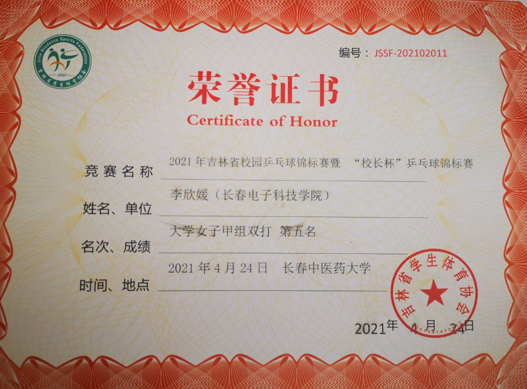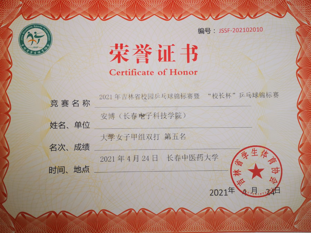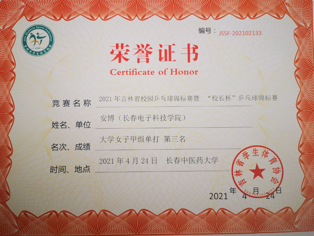 長春電子科技學(xué)院派出由校領(lǐng)導(dǎo)、教師和學(xué)生組成的三支隊伍共15名選手參加了此次比賽,經(jīng)過幾輪激烈的角逐,我校乒乓球代表團(tuán)隊榮獲“體育道德風(fēng)尚獎”;黨委書記韓秋葉榮獲“校長杯”男子單打第五名;商學(xué)院安博同學(xué)榮獲“大學(xué)甲組”女子單打第三名;安博同學(xué)和光電工程學(xué)院李欣媛同學(xué)榮獲“大學(xué)甲組”女子雙打第五名。