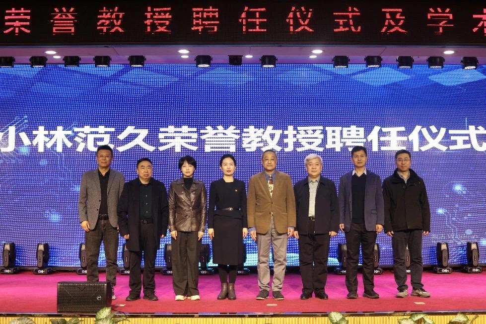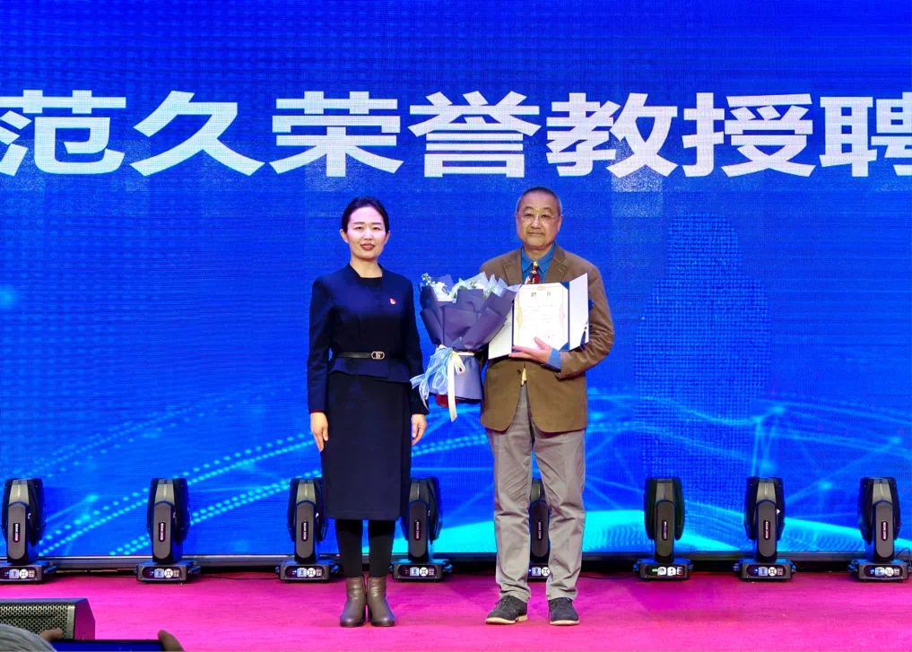 學(xué)校董事長(zhǎng)、執(zhí)行校長(zhǎng)鞠秀晶為小林范久教授頒發(fā)聘書