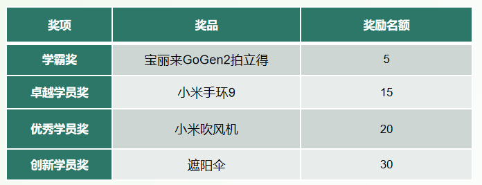 溫馨提示:獎(jiǎng)項(xiàng)與獎(jiǎng)品為全國(guó)各高校參與課程學(xué)生共同參評(píng),非我校學(xué)生內(nèi)部參評(píng)。