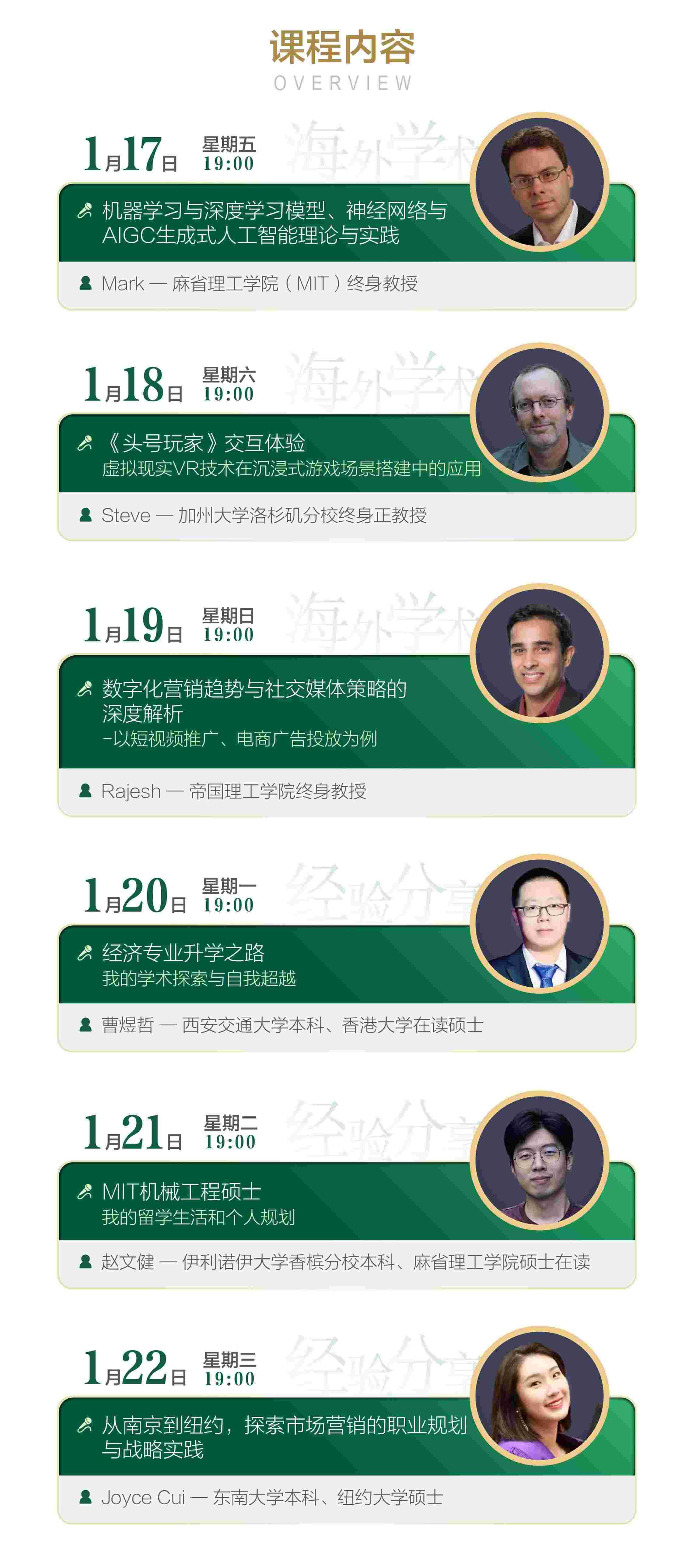 1. 課程時(shí)間:2025年1月17號(hào)-1月22號(hào)(每晚7:00)