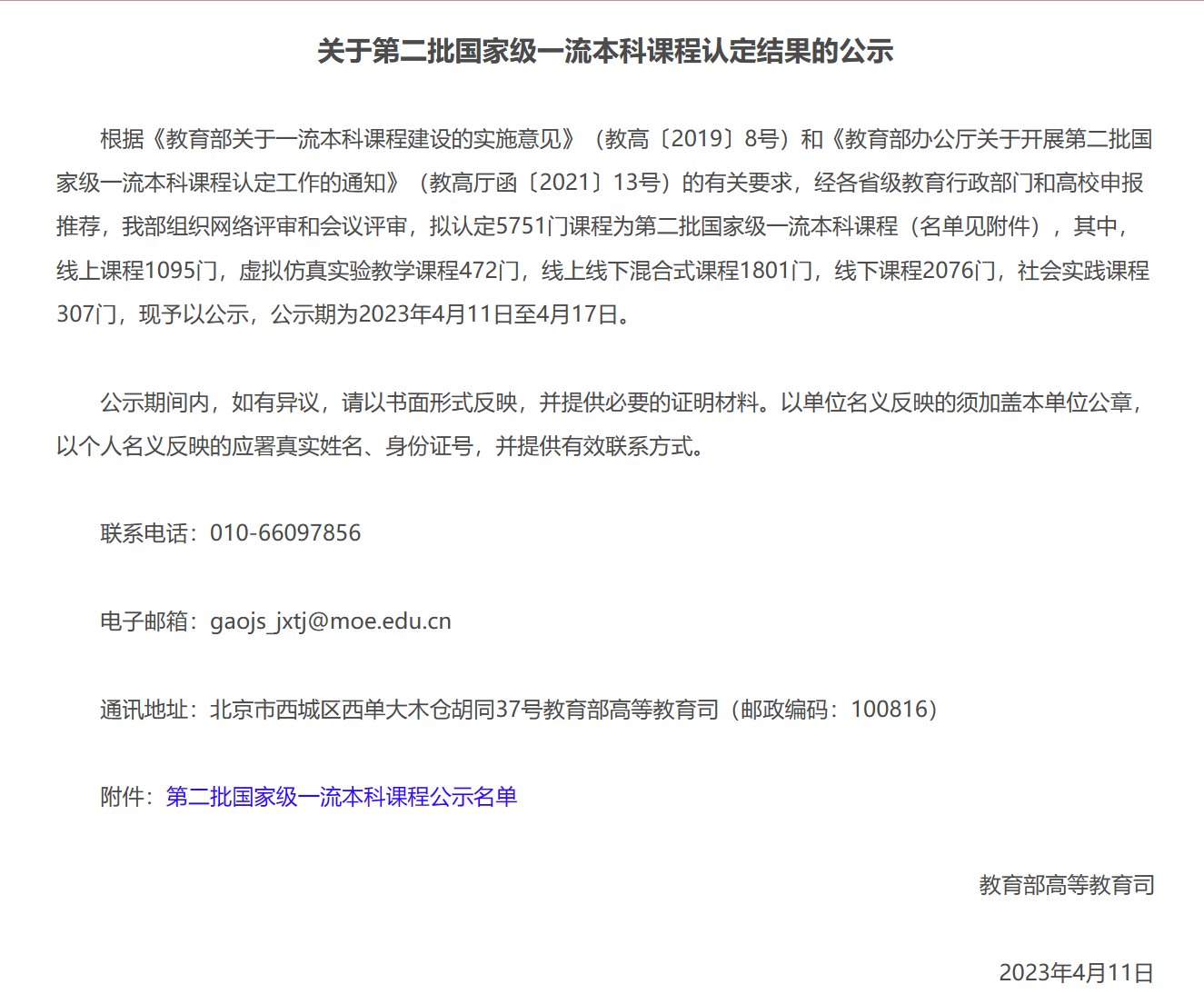 國家級一流本科課程是教育部推進一流課程“雙萬計劃”和一流專業(yè)“雙萬計劃”實施,推動新工科、新醫(yī)科、新農(nóng)科、新文科建設的首要任務和重要抓手。