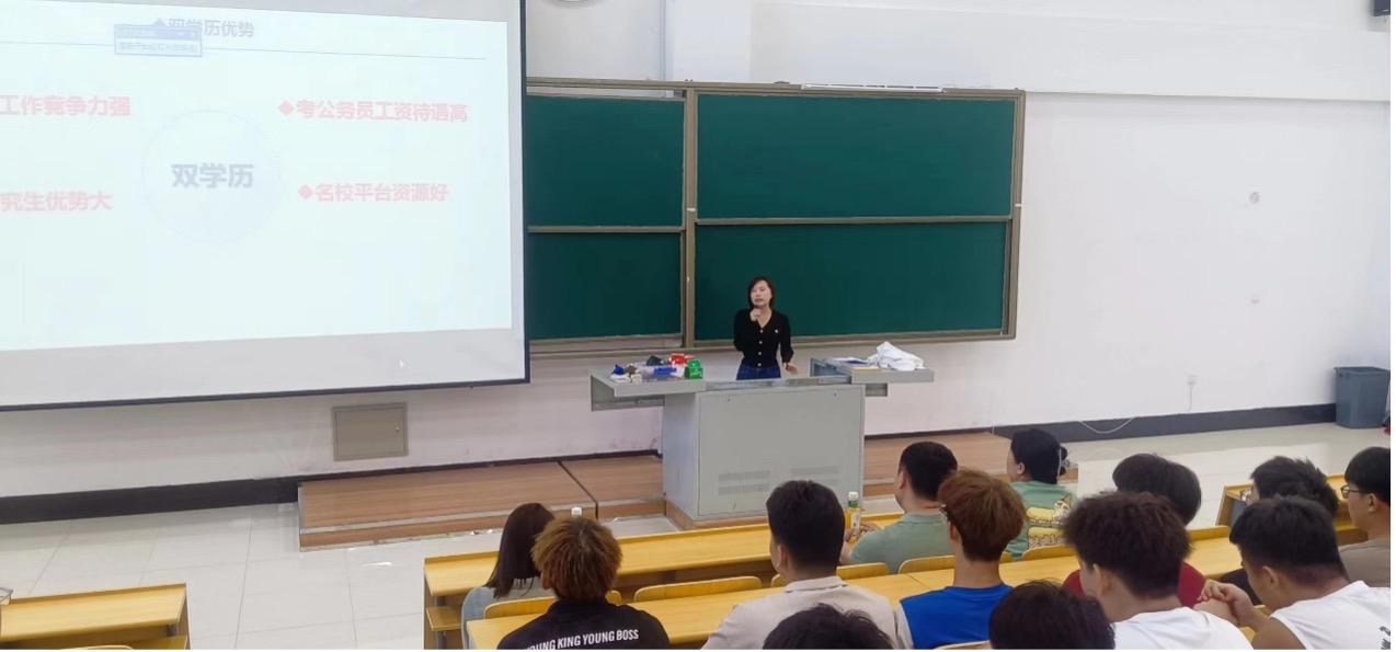 活動特別邀請吉林大學楊老師對雙學歷的相關內(nèi)容進行了詳細講解,從什么是雙學歷、雙學歷的就業(yè)前景、報名流程和注意事項等方面進行宣講。