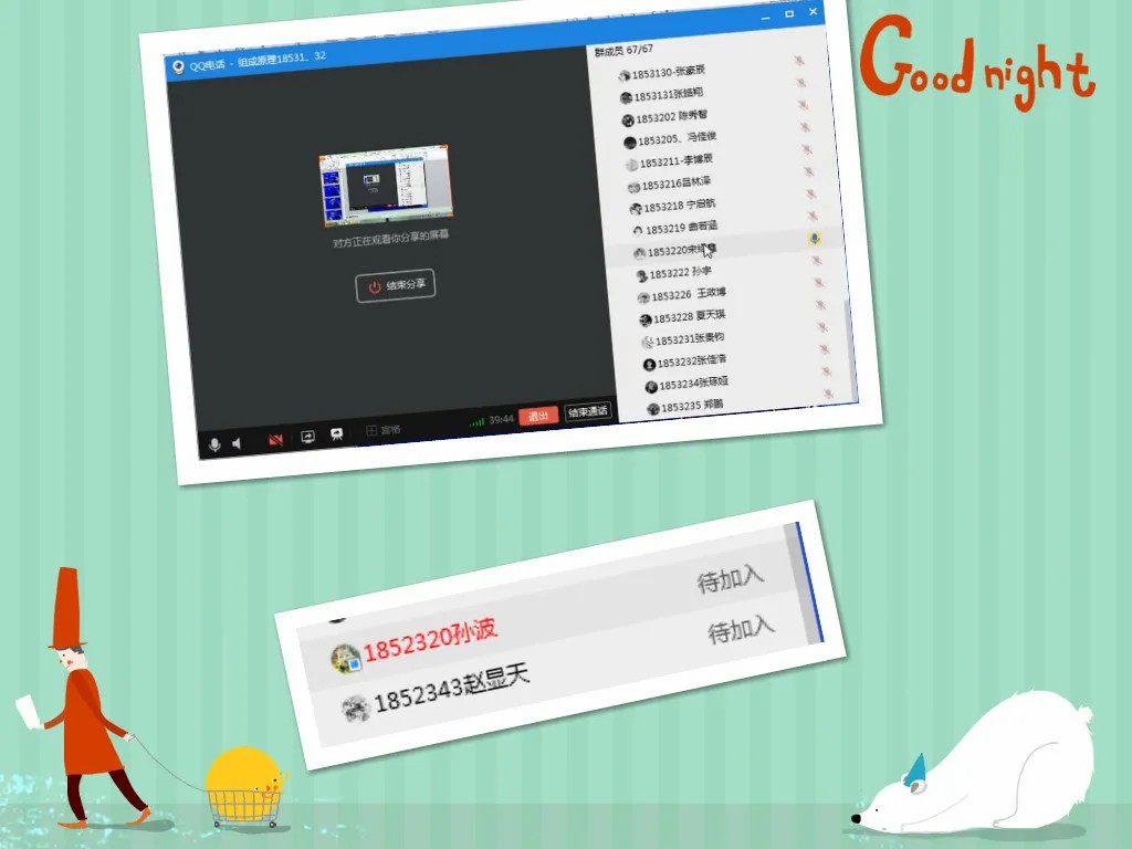 在正式授課之前,做好了充足的準(zhǔn)備工作。首先將所有授課學(xué)生按照授課班級加入到QQ群當(dāng)中,并提前告知了上課之前的準(zhǔn)備工作和具體的要求,為開課做好了充分的準(zhǔn)備工作。開始用QQ群課堂授課,并進(jìn)行了測試,后來發(fā)現(xiàn)這種直播的方式,對于統(tǒng)計(jì)學(xué)生到課情況有一定的弊端,進(jìn)去群課堂的時(shí)候顯示的是昵稱而不是學(xué)生的班級學(xué)號姓名這種群名片,不利于統(tǒng)計(jì)沒到課學(xué)生情況,所以改采用在群中直接視頻連接分享桌面的方式授課。這樣可以方便的查看誰還沒有加入,提醒他盡快加入進(jìn)來上課。