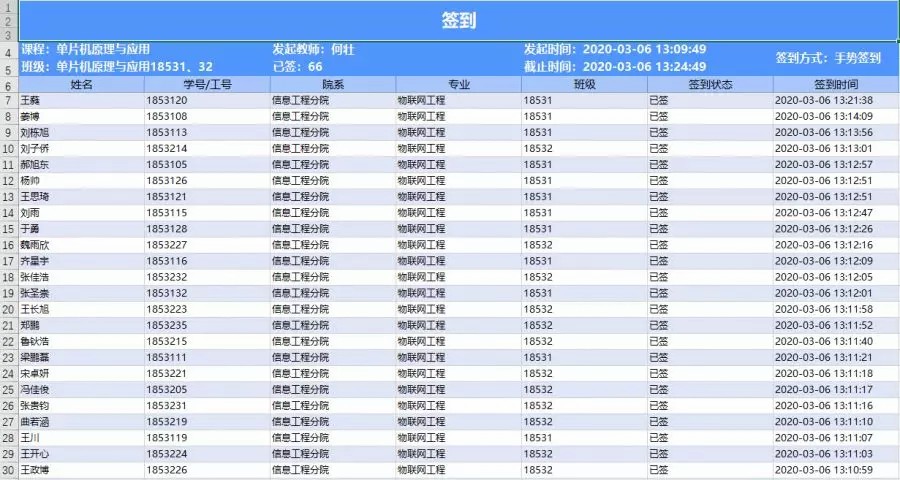 對于提醒學(xué)生上課還利用了QQ群中的打卡功能,在上課前十分鐘內(nèi)要求所有人打卡,來記錄到課情況。這種打卡上面有序號可以很方便的看到多少人沒打卡,一共打卡了多少人。