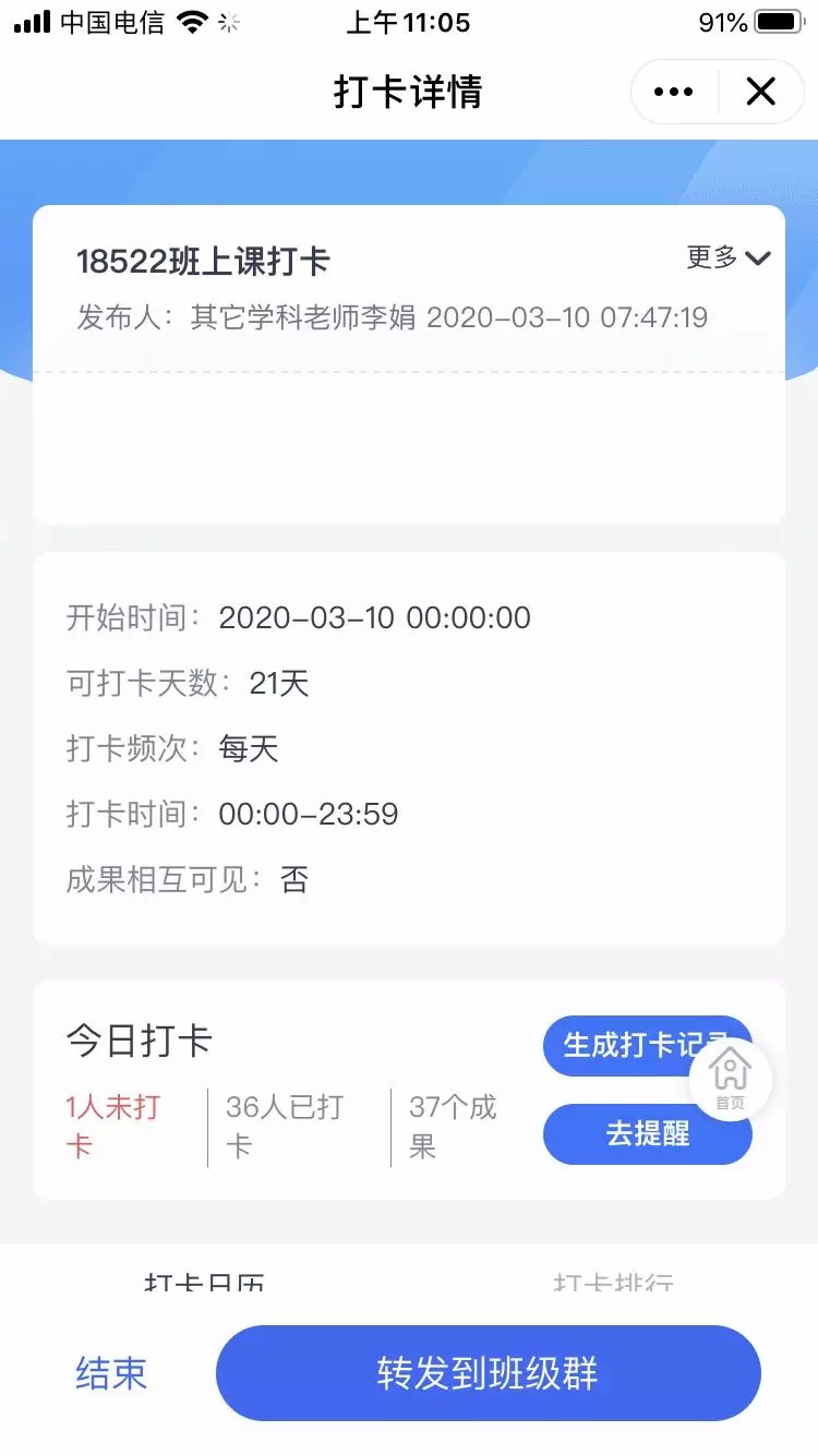 為保證上課出出勤率,本人通過平臺(tái)的教師助手中的學(xué)生上課打卡對(duì)學(xué)生進(jìn)行考勤。