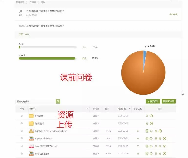 課前通過學(xué)習(xí)通進(jìn)行問卷調(diào)查了解學(xué)生的學(xué)習(xí)條件,發(fā)放學(xué)習(xí)過程中所需要的材料,進(jìn)行簽名等。