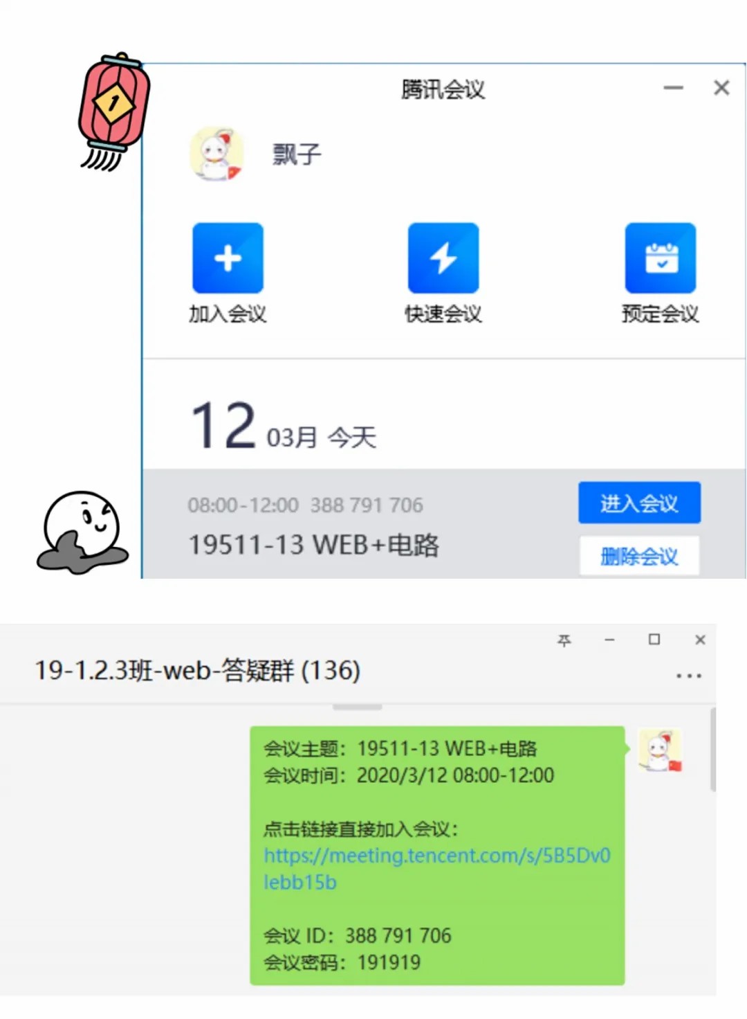 (4)預(yù)定騰訊會(huì)議,并在微信群中發(fā)布會(huì)議名稱(chēng),時(shí)間等信息。