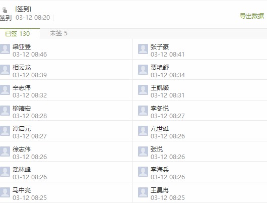 (5)上課前,使用學(xué)習(xí)通進(jìn)行簽到。可以通過(guò)觀(guān)察簽到時(shí)間,來(lái)判斷學(xué)生的出勤,遲到等情況。