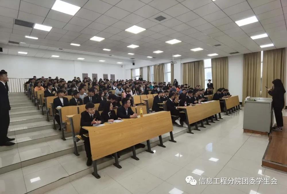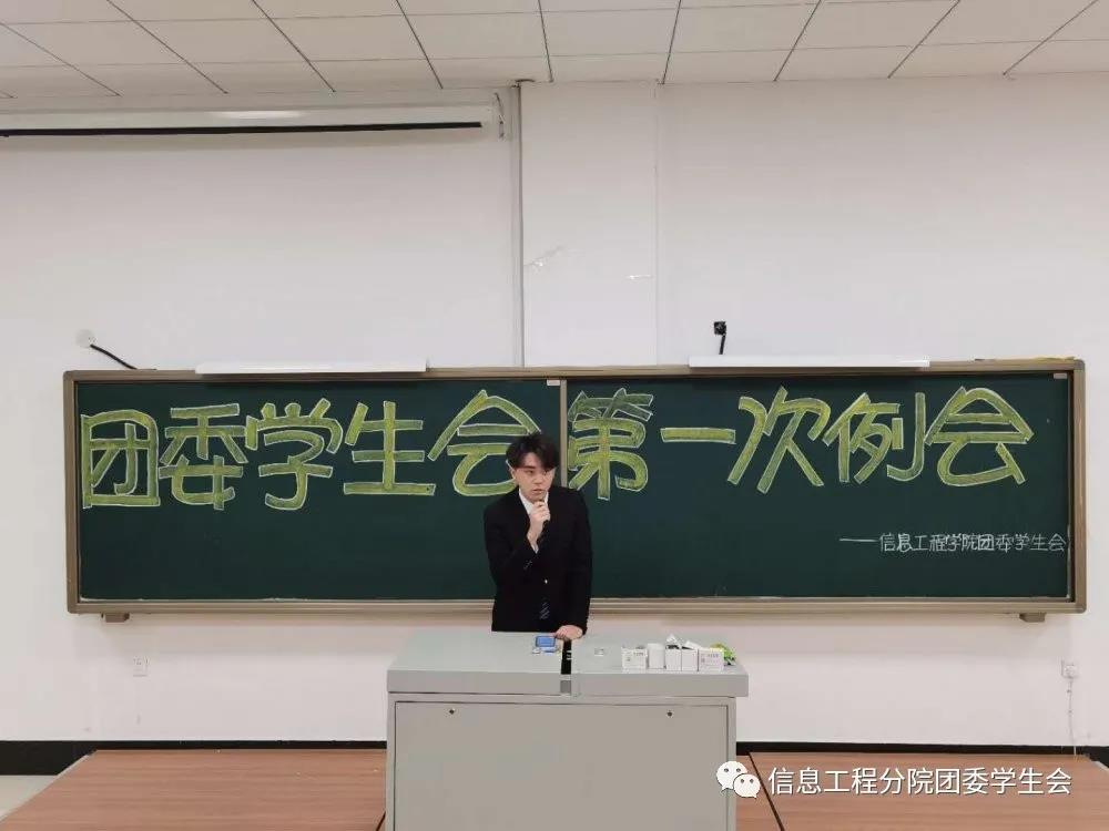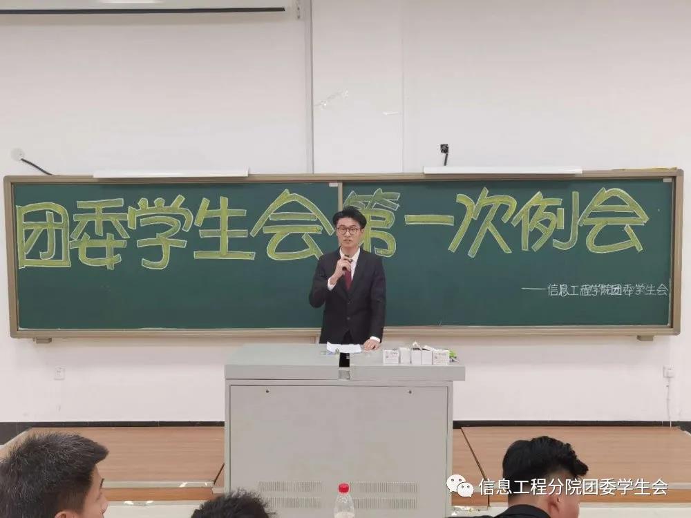 學生會副主席戰(zhàn)浩龍向大家介紹學生會的職責,端正態(tài)度,銘記初心,用積極的心態(tài)完成好每一次學生會布置的任務(wù)。來到學生會,就是鍛煉自身的一個開始,要以身作則。只要我們攜手同行,奮斗努力,必定會使我們信息工程學院散發(fā)出耀眼的光芒。