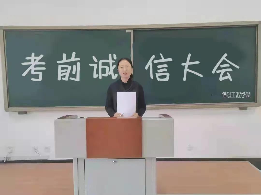 信息工程學(xué)院團(tuán)委書(shū)記陳秀敏老師強(qiáng)調(diào)誠(chéng)信考試,不但要嚴(yán)肅考風(fēng)考紀(jì),更要加強(qiáng)學(xué)生個(gè)人的品德修養(yǎng)!誠(chéng)信是做人的一種品質(zhì),是個(gè)人成就事業(yè)的根基!唯有在學(xué)習(xí)生活中不瞞己、不做樣,時(shí)刻懷揣一顆誠(chéng)信赤誠(chéng)的心,才能在前進(jìn)中目標(biāo)堅(jiān)定,所向披靡。也唯有真學(xué)習(xí)、真水平、真實(shí)力,才能在考試中鎮(zhèn)定自若,沉著應(yīng)考。