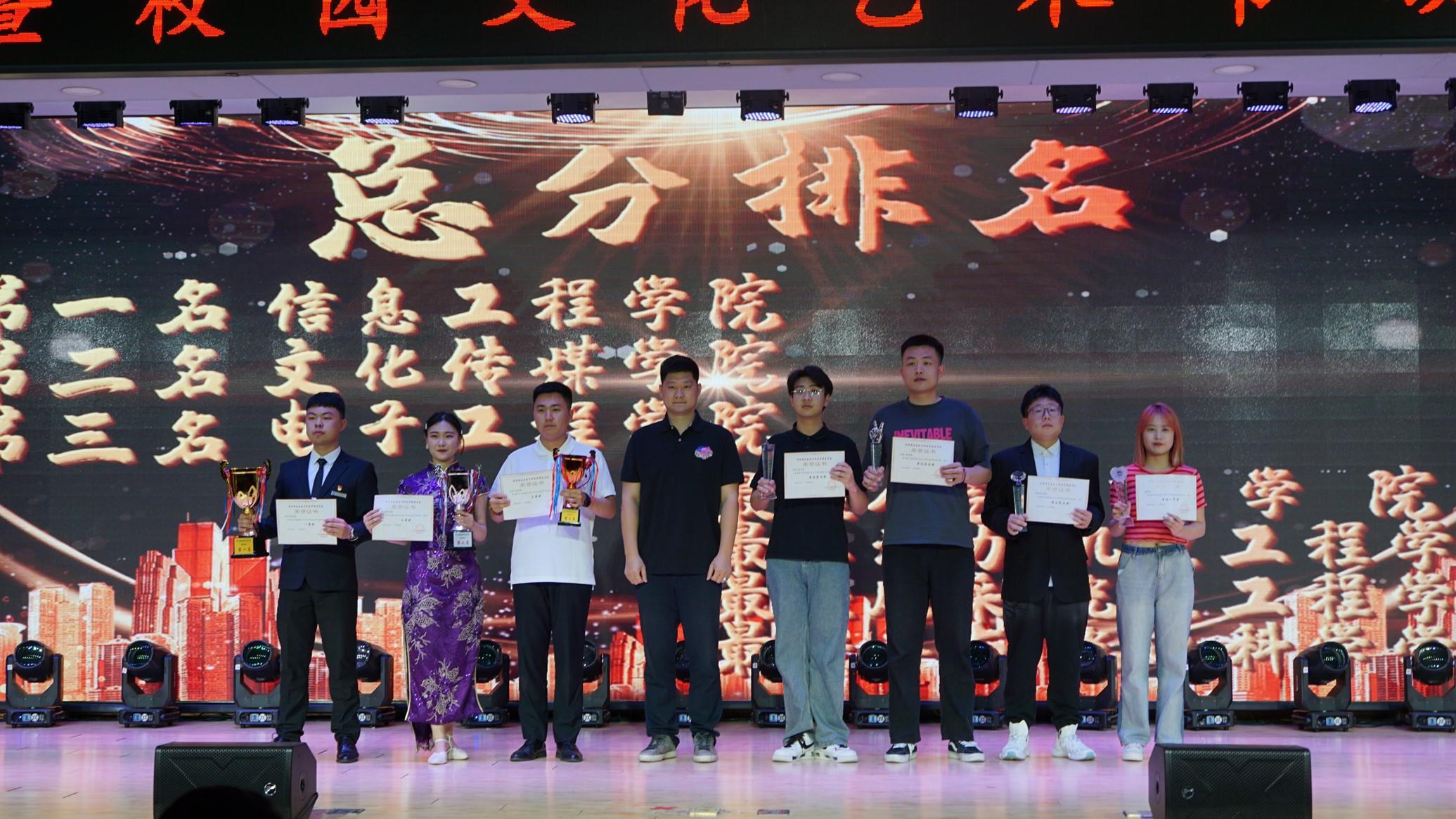 晚會以精彩的表演讓觀眾感受到了一場別具一格的視覺盛宴。晚會應(yīng)邀出席觀看的嘉賓有學(xué)校團(tuán)委老師,社團(tuán)指導(dǎo)教師,各系團(tuán)委書記。我院學(xué)子們用彩色的油漆潑灑出社團(tuán)的斑斕;用社團(tuán)的風(fēng)采書寫下學(xué)院的輝煌。晚會上,他們鏗鏘有力搖旗的氣勢,無不體現(xiàn)著信息工程學(xué)院學(xué)子自強(qiáng)弘毅,知行合一的精神,他們用自己的風(fēng)采為信息工程學(xué)院奪得桂冠,以第一名的成績,在頒獎(jiǎng)臺上奪目耀眼。