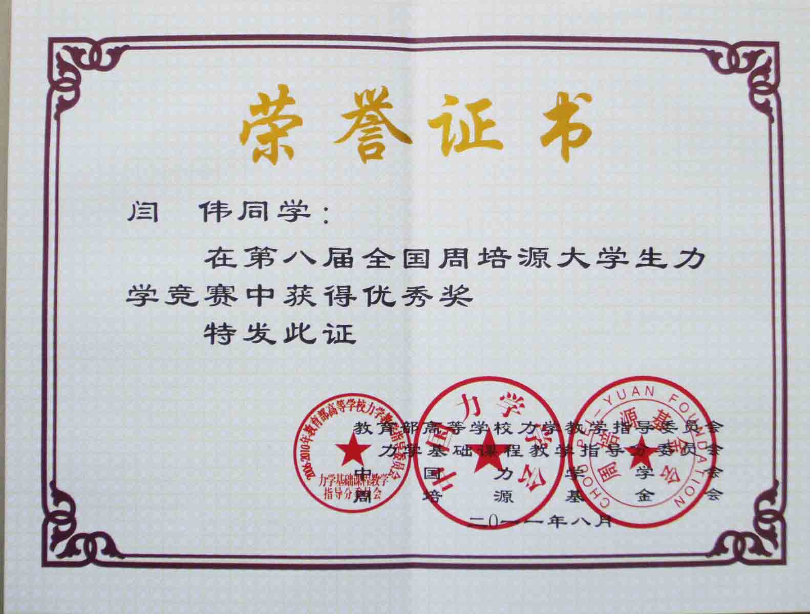 我院在第八屆全國周培源大學生力學競賽中喜獲佳績
