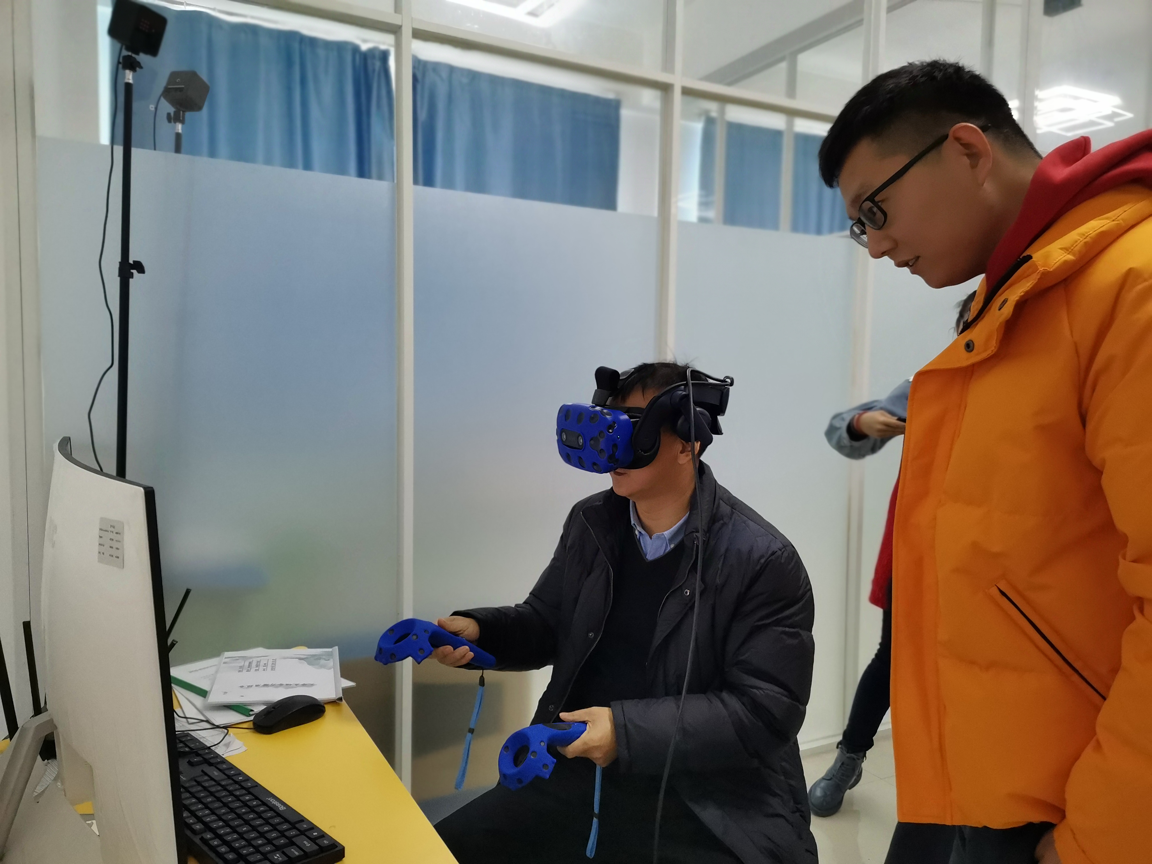王忠紅會長等一行在劉薇娜副院長和重點項目辦公室的陪同下參觀了我校工業(yè)機(jī)器人實訓(xùn)基地、達(dá)光智能制造創(chuàng)新基地和虛擬仿真與人才潛質(zhì)大數(shù)據(jù)評估中心,并在機(jī)電學(xué)院教師的指導(dǎo)下操作了VR技術(shù)的評估軟件。